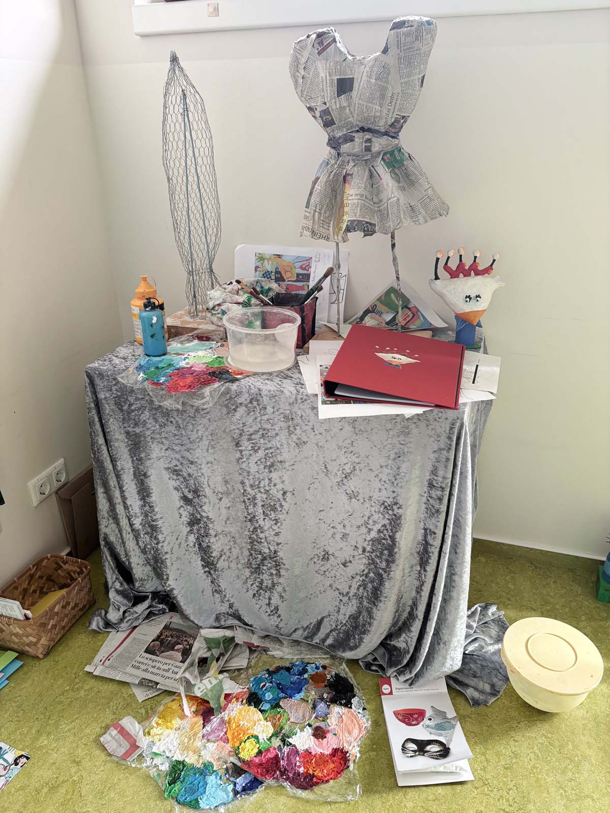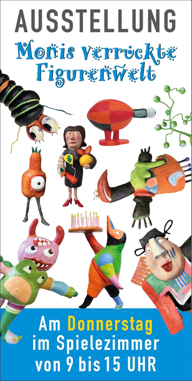Am 13. November 2025 krähte der Hahn zur Ausstellung „Monis verrückte Figurenwelt“ in der Kita Haus der Entdecker in Zornheim. Alle Kinder waren eingeladen, sich anzuschauen, was ich so mache, wenn ich nicht im Kindergarten arbeite. Dafür mussten die Kinder einen Tag lang auf ihr Spielzimmer verzichten, da dieses die Ausstellung beherbergte.